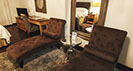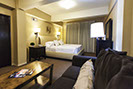 Amplia y lujosa habitación con cama king. La habitación está diseñada para personas de negocio o parejas que exigen funcionalidad y comodidad sin descuidar el buen gusto. Cuenta con un escritorio de trabajo, lámparas, teléfono y televisión de pantalla plana. El baño cuenta con lujosas amenidades que incluyen: Shampoo, acondicionador, crema humectante y jabón de masaje para una ducha agradable. Para mayor comodidad la habitación cuenta con una sala y sofá o área lounge para descansar, tener una reunión o leer un buen libro.