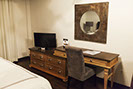 Cálida, funcional y cómoda habitación con la opción de una o dos camas matrimoniales. Sus detalles únicos de Hotel Fray Marcos agradan hasta al mas exigente de los viajeros. Cuenta con un buró, botella de agua de cortesía, lámpara y televisión de pantalla LCD de 32” y un closet para guardar el equipaje. El baño dispone de una colección de amenidades que incluyen shampoo, acondicionador, crema humectante y jabón para una ducha agradable.